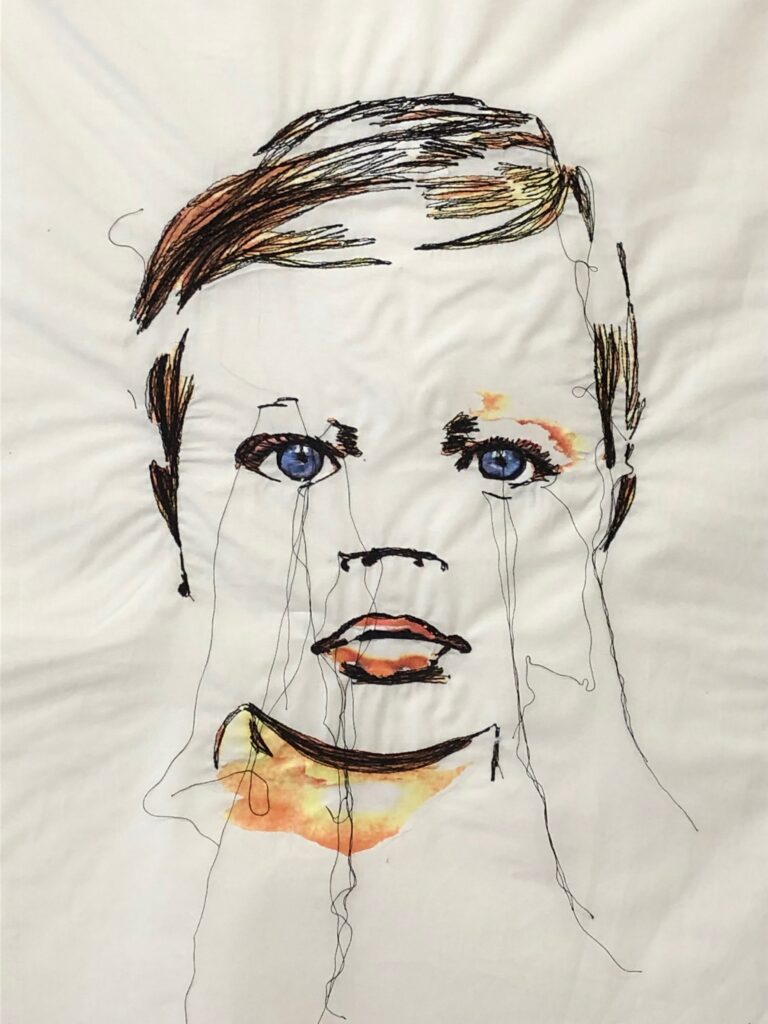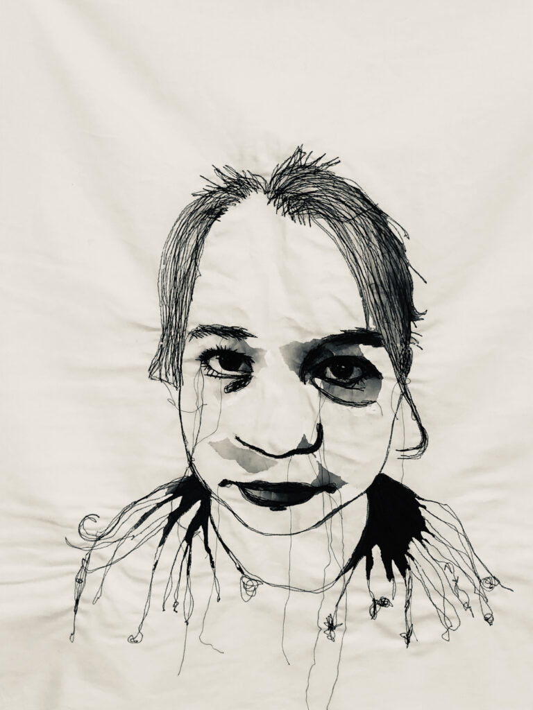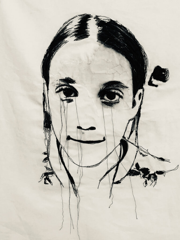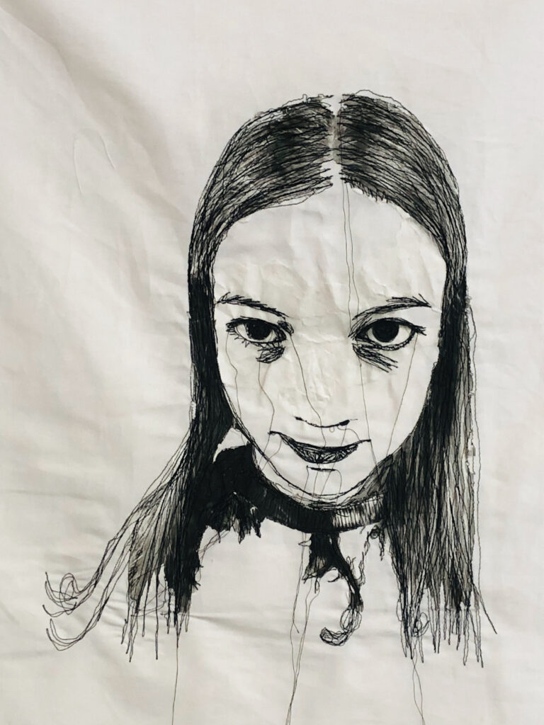 8 Portraits junger Frauen, welche – fiktiv oder real – vom Kind Sein an der Schwelle zum Erwachsenenlebens stehen. Das Verfahren des Stickens verweist dabei auf eine typisch weiblich Zuschreibung.
